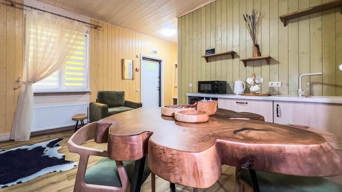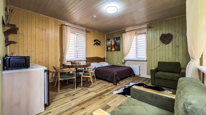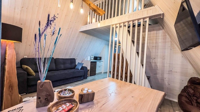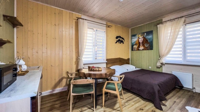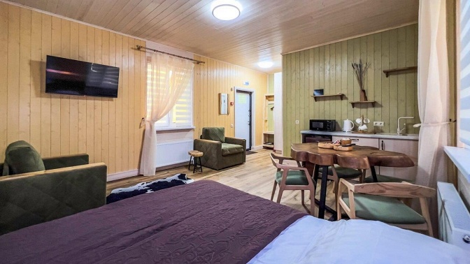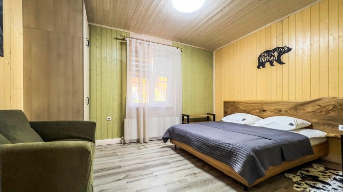 Описание инфраструктуры и номеров: — в домике есть большая двуспальная кровать и комфортный раскладной диван;